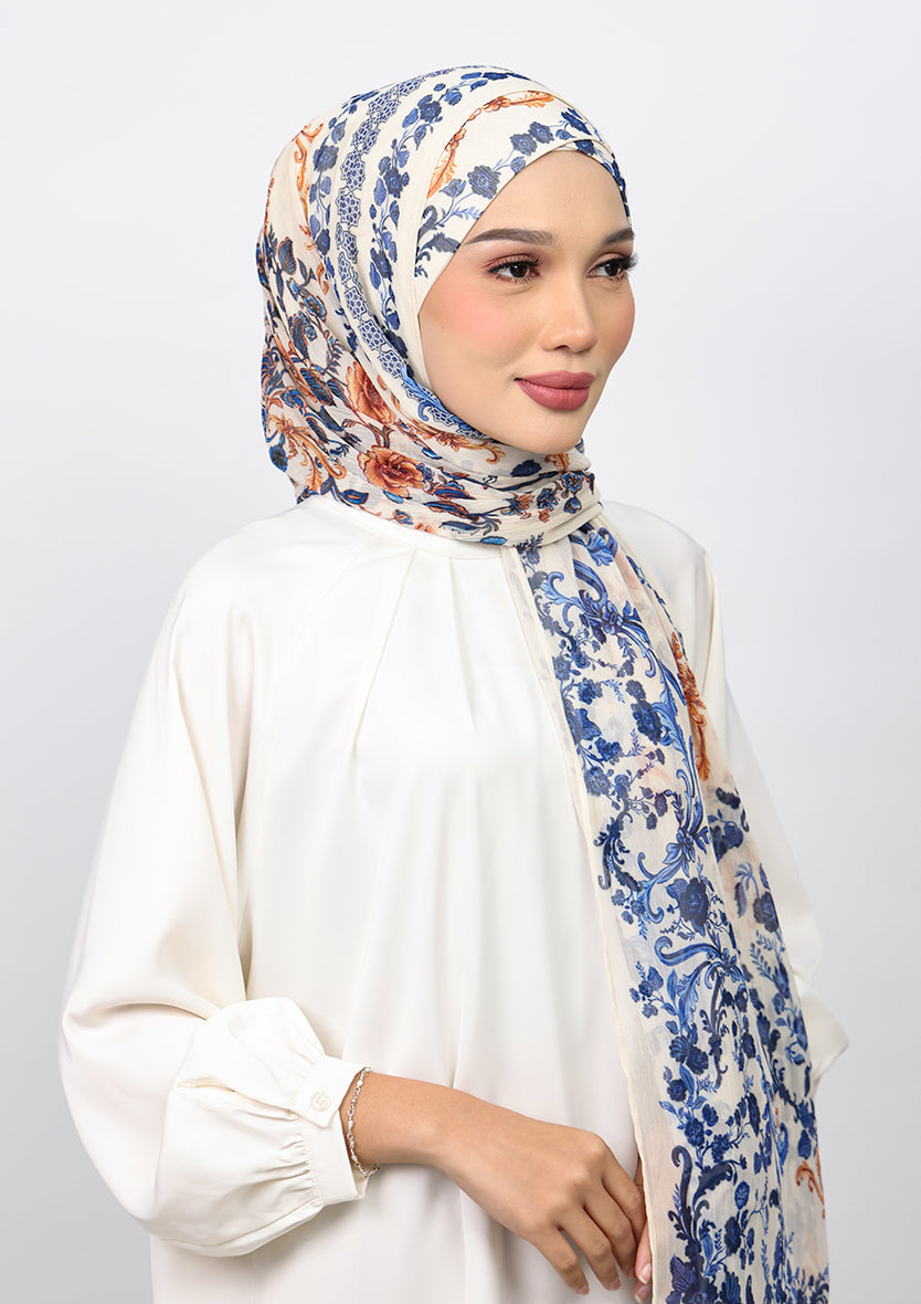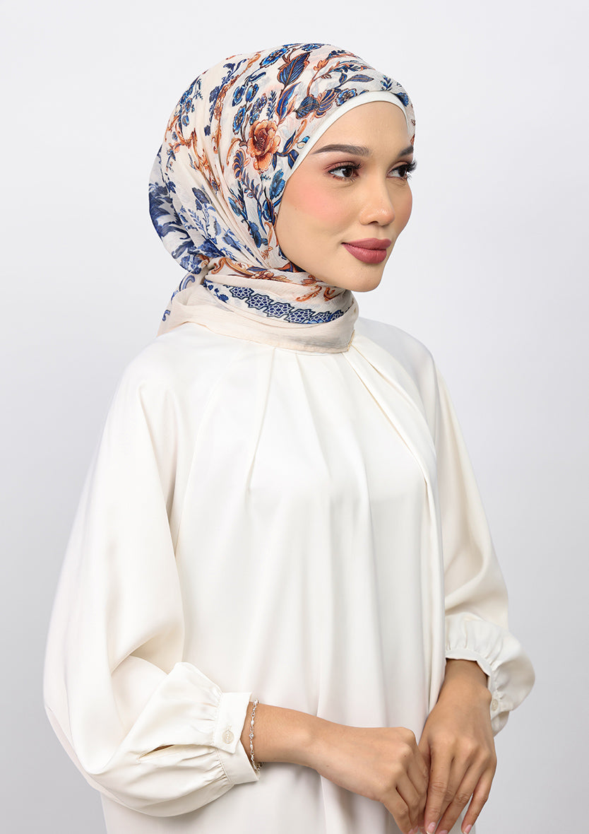 Elevate your style on the go with the 'Loose Freestyle' instant hijab set. This pre-stitched design features a loose relaxed style. It includes a 180 cm lightweight shawl, lined with 100% cotton voile, ensuring coverage, styling flexibility, and breathability.