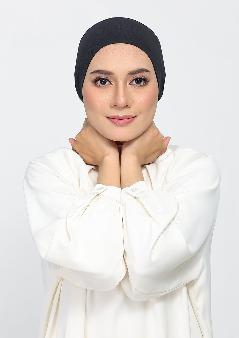 This instant hijab style is a pinless “wrapped” hijab that will let you achieve the loose hijab look without the extra layers. It features a loose wrap all around the forehead , and a hidden elastic under the chin to fit all head sizes.