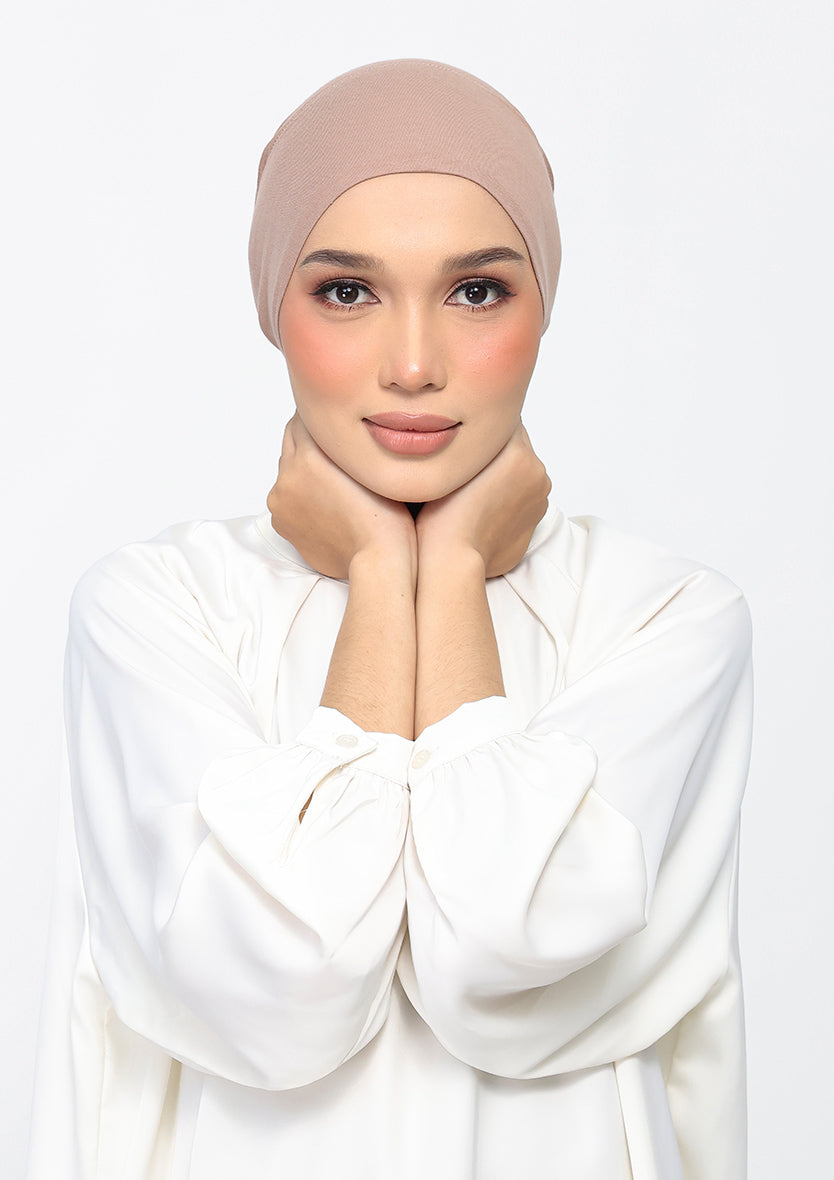This instant hijab style will let you achieve a loose hijab or a modest turban look in no time. It features an attached full coverage inner that covers the hair and neck.