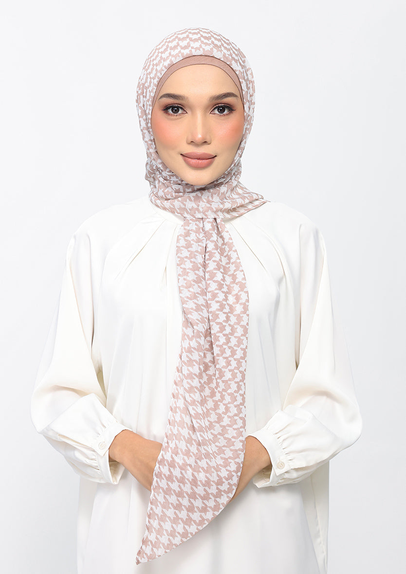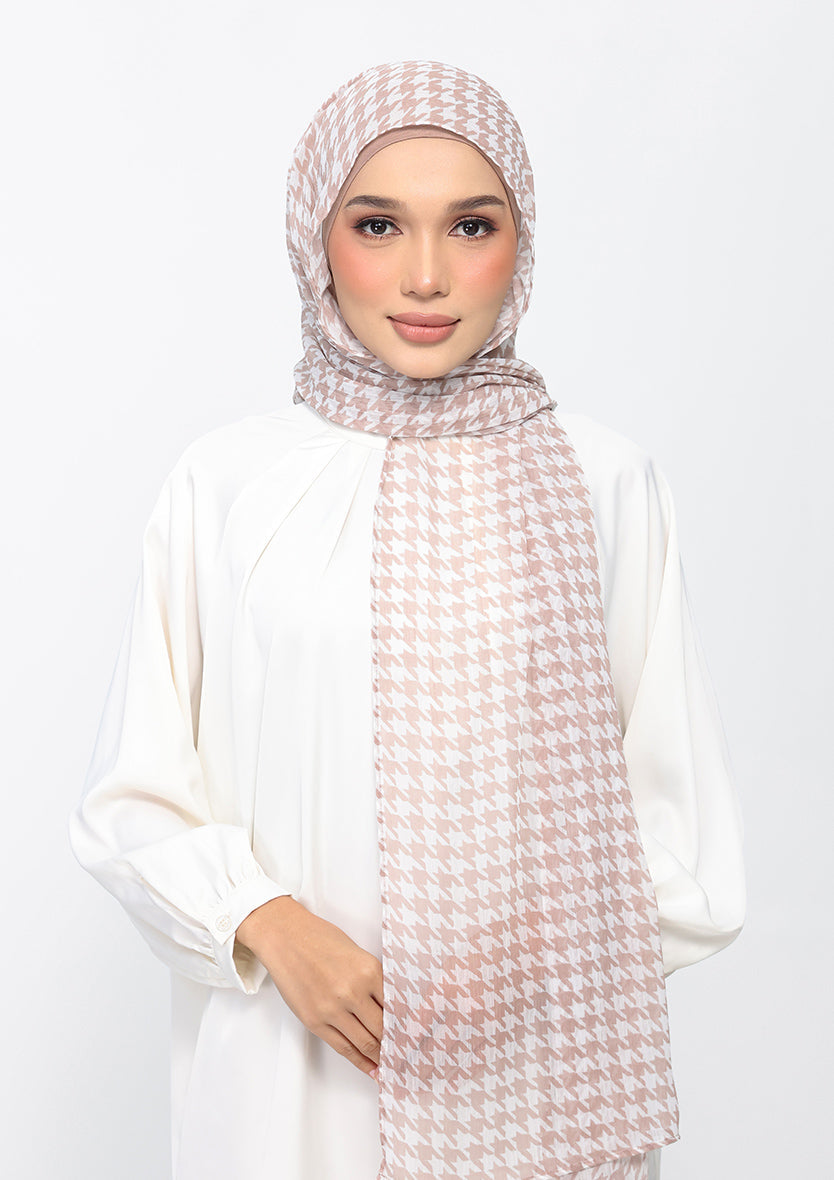 Houndstooth Beige - Instant Hijab with Inner