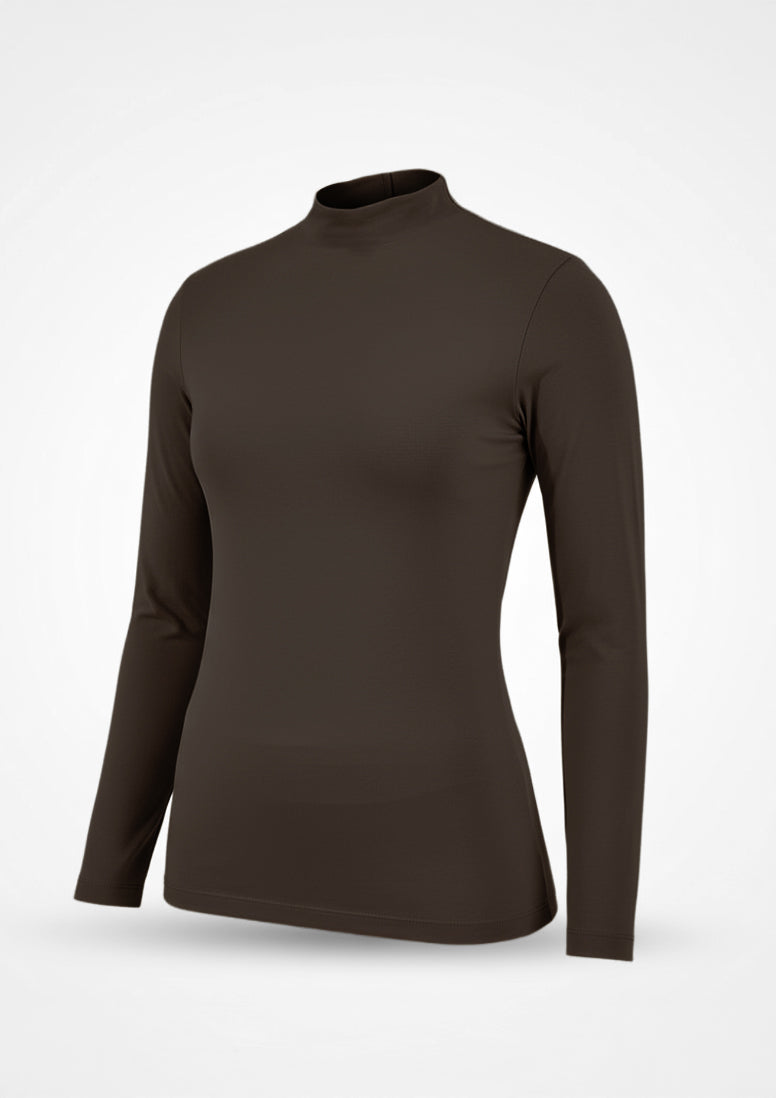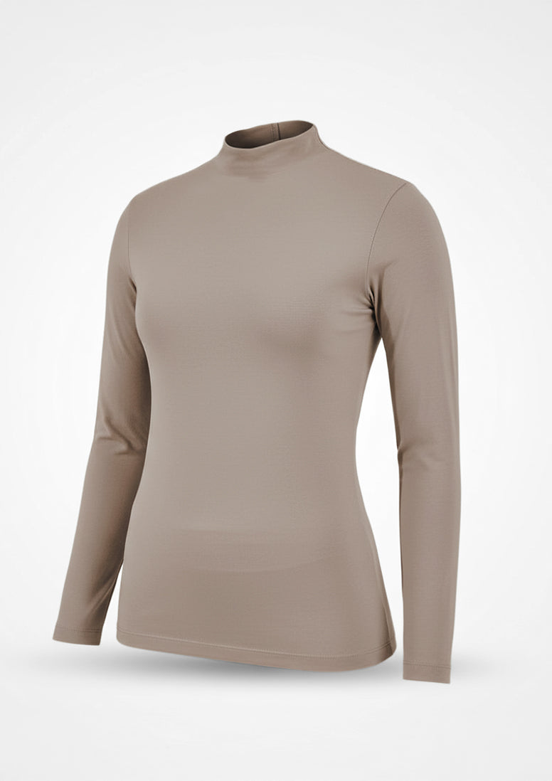 The Long Sleeve High Collar Top from our Innerwear Collection. Pair this piece with a short-sleeved t-shirt or blouse. You can cover up while keeping cool, thanks to this shirt’s comfortable, breathable cotton/elastic weave .
